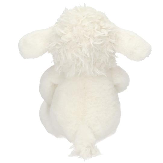 Suavecita, mullida y absolutamente adorable. Esta ovejita de peluche, con sus orejitas largas y sus ojitos brillantes, está hecha con un material tan suave que dan ganas de abrazarla sin parar. Una compañera perfecta para mimarla y llenarla de cariño.”