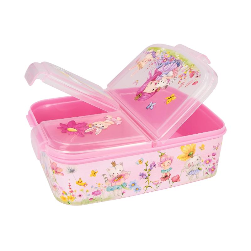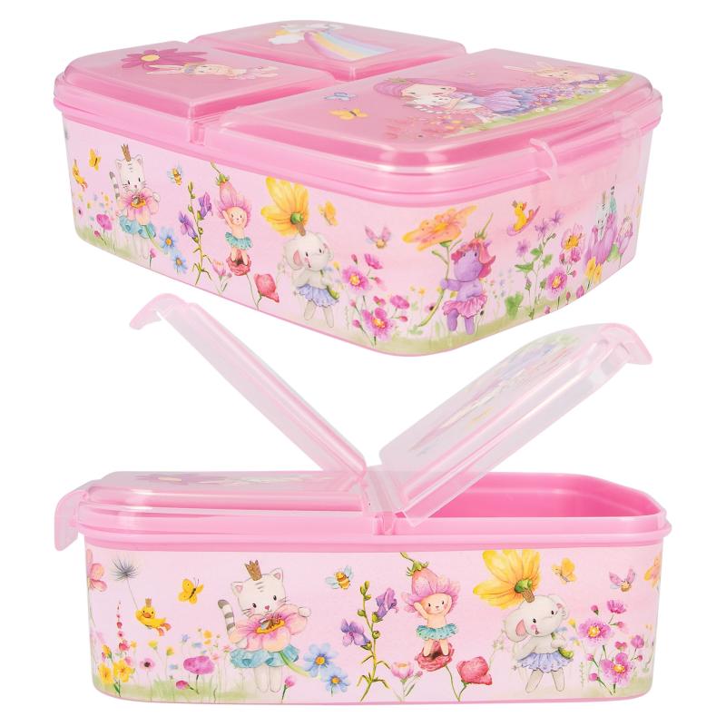Fiambrera infantil ideal para recreos llenos de magia y encanto. La fiambrera rosa de Princess Mimi cuenta con tres compartimentos independientes (uno grande y dos pequeños) y cierres de clip prácticos, que evitan que los alimentos se mezclen.