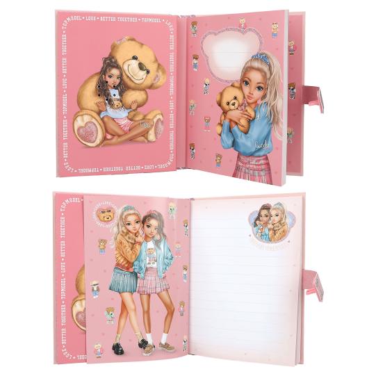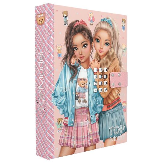 Monísimo!!En su color rosa palo y estampado de ositos y unos cuadritos plateados en su lateral y las dos guapas modelos de TOPModel en la portada, el diario con código de la colección TEAM TEDDY guardara todos tus secretitos y solo tú, podrás abrirlo una vez introduzcas tu código personal, los cuatro números que quieras y al abrirse sonara una sintonía muy moderna y pegadiza