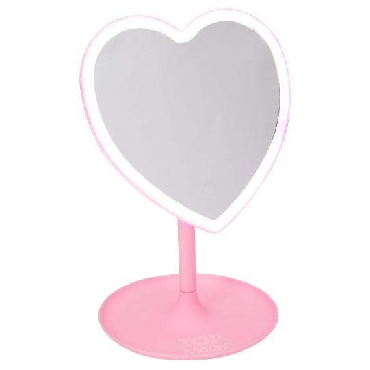 Divino ¡!!!Nada mejor que espejo para reflejar tu belleza!!! Pero este de TOPModel además te iluminara. Su diseño precioso en forma de corazón es de color rosa y una luz led lo rodea, además es reclinable puedes pedir más…pues si el pie es redondo y podrás dejar pequeñas cositas, joyas, coleteros, maquillaje o incluso pinzas para el pelo. Tú decides ;)