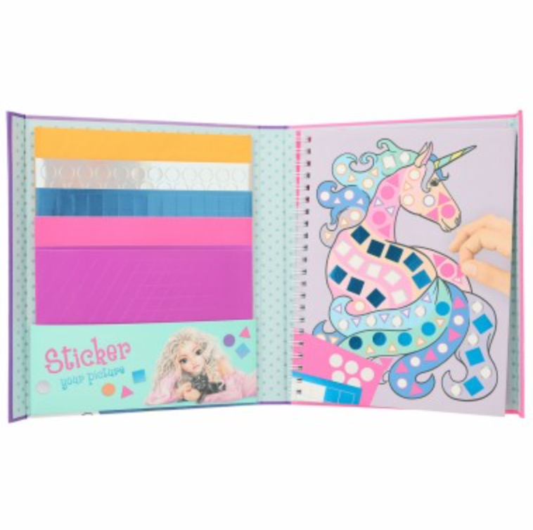 Este es un magnifico y entretenido libro de pegatinas! Podrás decorar los fantásticos y simpáticos animales y modelos TopModel. Tiene varias hojas de colores brillantes, marcadas con pequeñas pegatinas en formas, redondas, cuadradas y triangulares… a divertirse!!!