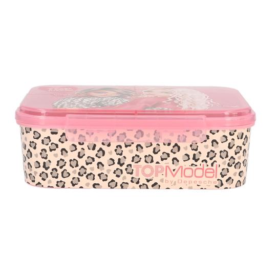 Esta fiambrera rosa de TOPModel es ideal para llevar tu comida con estilo toda la base está decorada con un diseño animal print! Súper en tendencia y la tapa abatible rosa transparente muestra a dos modelos muy cool que también lucen detalles con este estampado.En el interior cuenta con tres compartimentos separados que te permiten organizar tus alimentos fácilmente sin que se mezclen es práctica ligera y perfecta para el cole o donde quieras llevarla